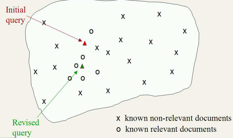 Dabei werden relevante und nicht-relevante Dokumente als distinkte Mengen aufgefasst. In diesem Sinne wird der Query-Vektor so modifiziert, dass er eine maximale Ähnlichkeit mit den relevanten und eine minimale Ähnlichkeit mit den nicht-relevanten Dokumenten hat.