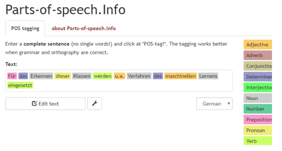 Für das Erkennen der Wortarten werden i.d.R. Verfahren des maschinellen Lernens eingesetzt, die den linguistischen Kontext des Wortes berücksichtigen.